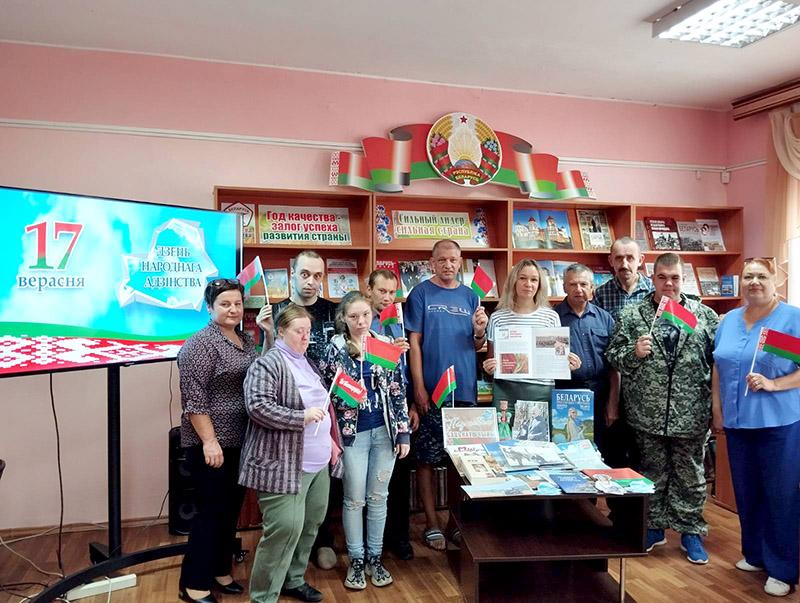 В преддверии самого молодого государственного праздника Республики Беларусь — Дня народного единства, а также Дня библиотек посетители отделения социальной реабилитации, абилитации инвалидов и дневного пребывания для граждан пожилого возраста Климовичского районного центра социального обслуживания населения побывали в центральной районной библиотеке им. Пехтерева.