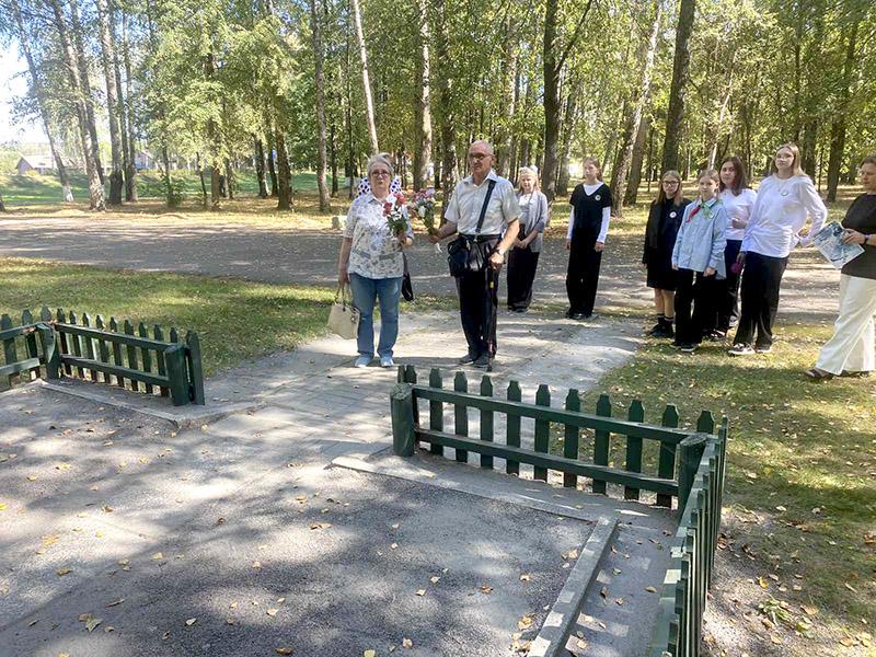 Гости вместе с руководством школы посмотрели дом, где раньше жила семья Бутелиных, прошлись по улице, которая носит имя героя земляка, возложили цветы к памятнику погибших воинов — на табличке обелиска высечена и фамилия Леонида Георгиевича Бутелина.
