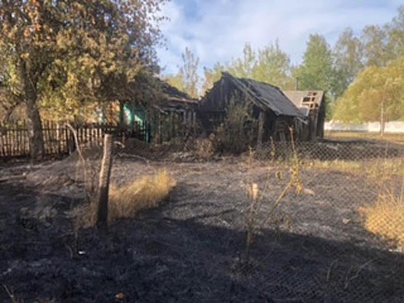В результате горения сухой растительности произошло загорание нежилого дома, а также надворных построек (сарай и баня).