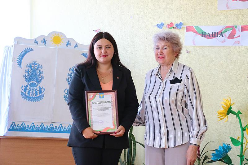 За поддержку и активное сотрудничество с Климовичским районным объединением профсоюзов Алеся Котова вручила Наталье Судиловской Благодарственное письмо, адресованное районному комитету Союза молодежи.