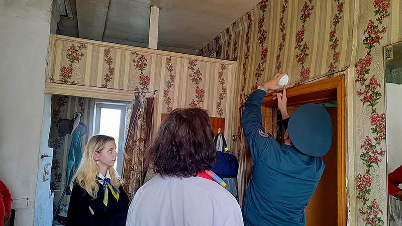 Инспектор сектора пропаганды и взаимодействия с общественностью районного отдела по чрезвычайным ситуациям Андрей Еремин вместе с молодежью рассказал, как подготовить печь к зиме, проверил работу автономных пожарных извещателей, а где это было нужно — установил их.