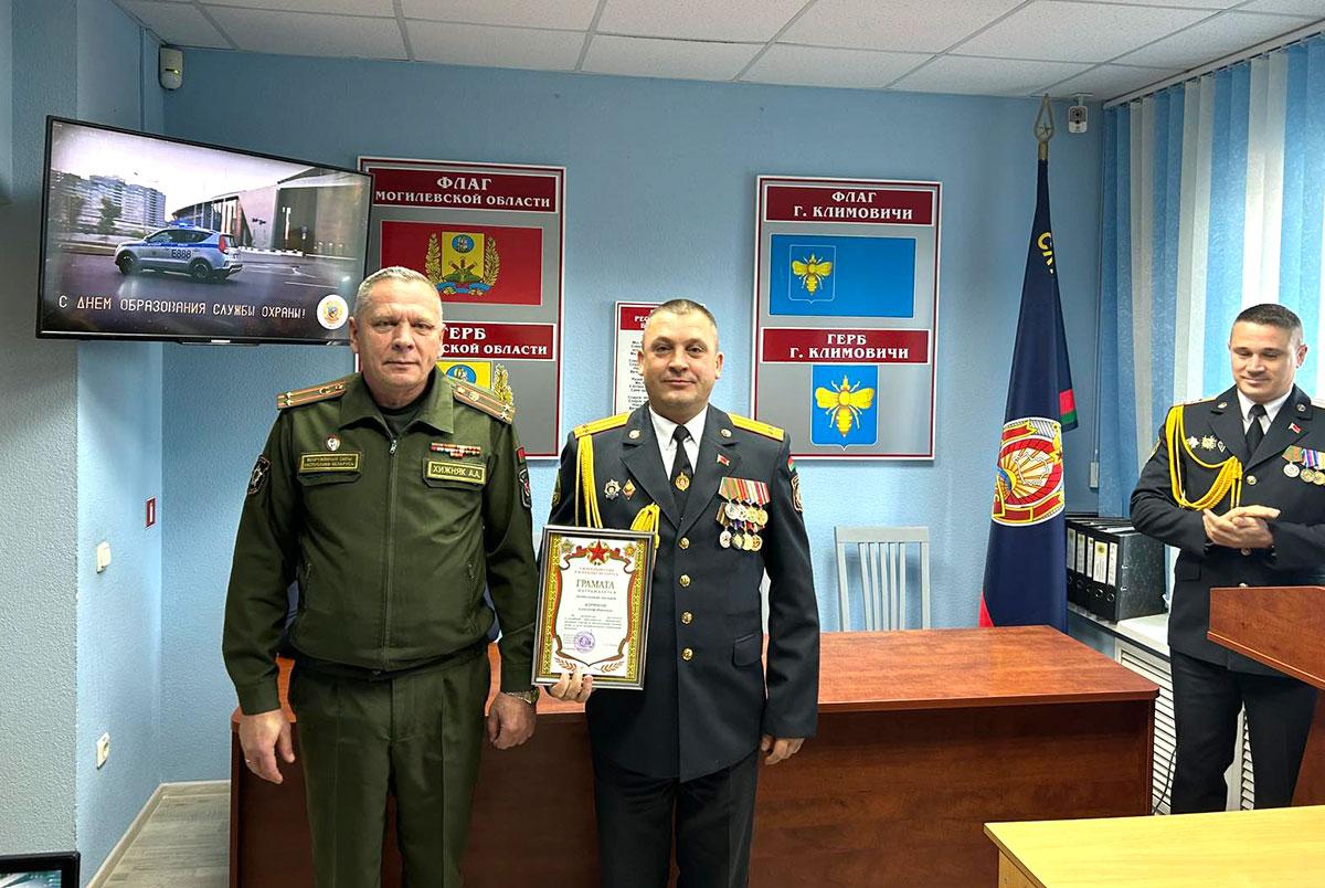 — Наш отдел охраны является мобильным и современно оснащенным подразделением. Личный состав состоит из молодых и крепких сотрудников милиции. С 2003 года в состав отдела вошли наряды милиции и посты охраны, дислоцирующиеся в г. п. Хотимск.