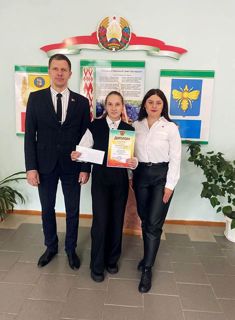 Начальник отдела идеологической работы и по делам молодежи Климовичского райисполкома Андрей Зенькович и первый секретарь райкома ОО «БРСМ» Наталья Судиловская вручили победительницам дипломы и денежные призы.