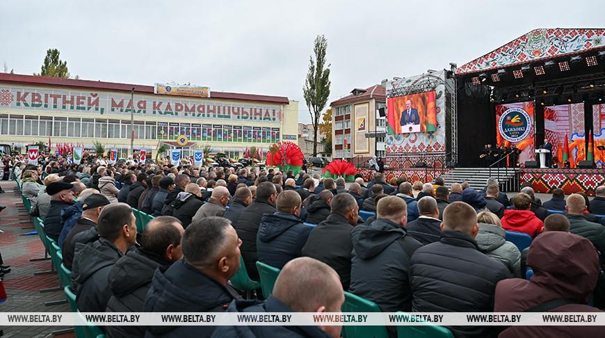 Александр Лукашенко 12 октября принял участие в торжественной церемонии чествования аграриев на фестивале-ярмарке «Дажынкі-2024» в городском поселке Корма Гомельской области. Это уже второй регион, куда глава государства, как и обещал, приехал на праздник к аграриям, чтобы низко покланяться им за их нелегкий, но такой нужный для страны труд.