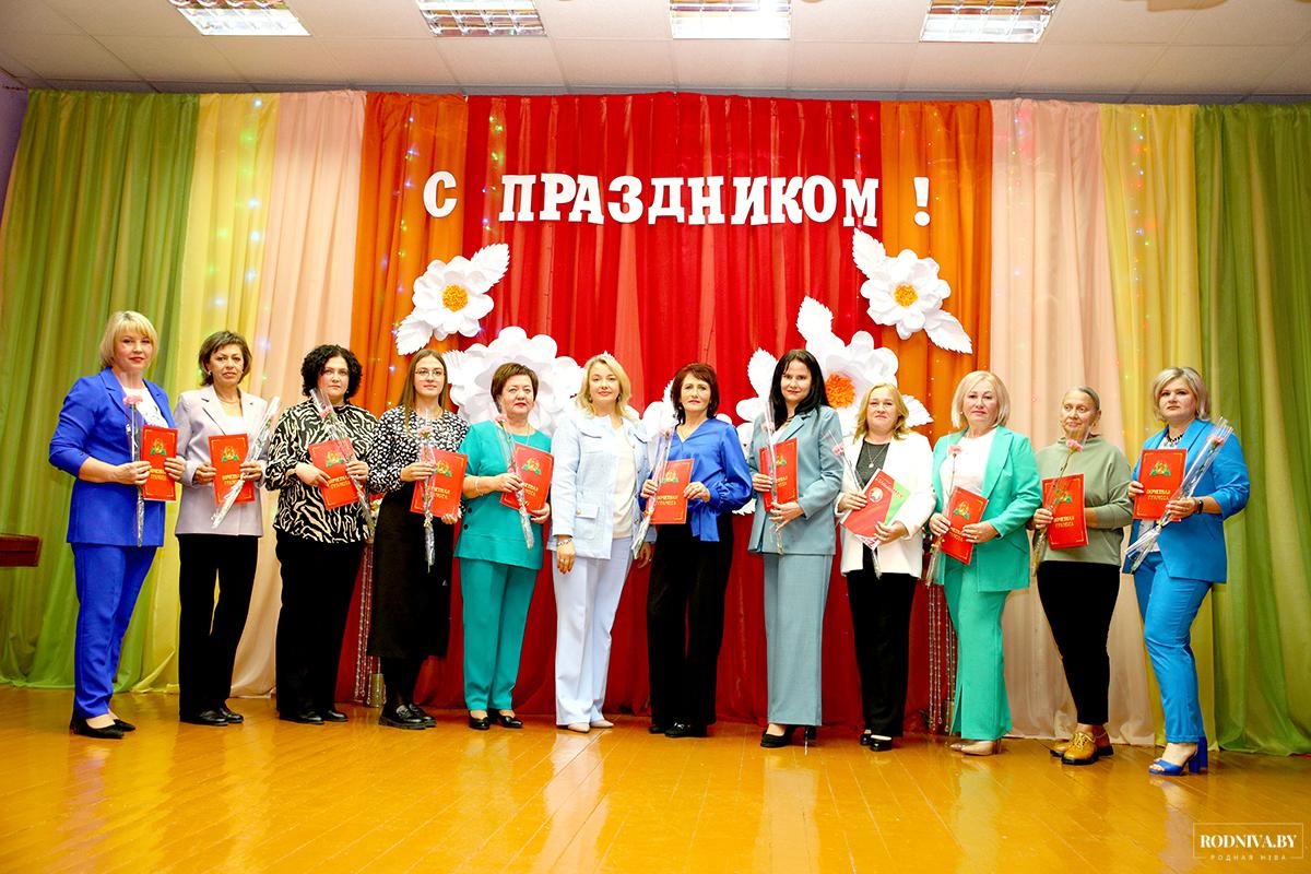 Ценными подарками от районной организации РОО «Белая Русь» наградили Светлану Ионаш — учителя начальных классов средней школы № 4; Тамару Комаровскую — заместителя директора по учебной работе средней школы № 1; Михаила Мамченко — заместителя директора по хозяйственной части центра дополнительного образования детей и молодежи; Елену Маслову — педагога-организатора аграрного колледжа; Тамару Рубан — управляющего центром по обеспечению деятельности бюджетных организаций; Ларису Трошину — заместителя директора по воспитательной работе районной гимназии.