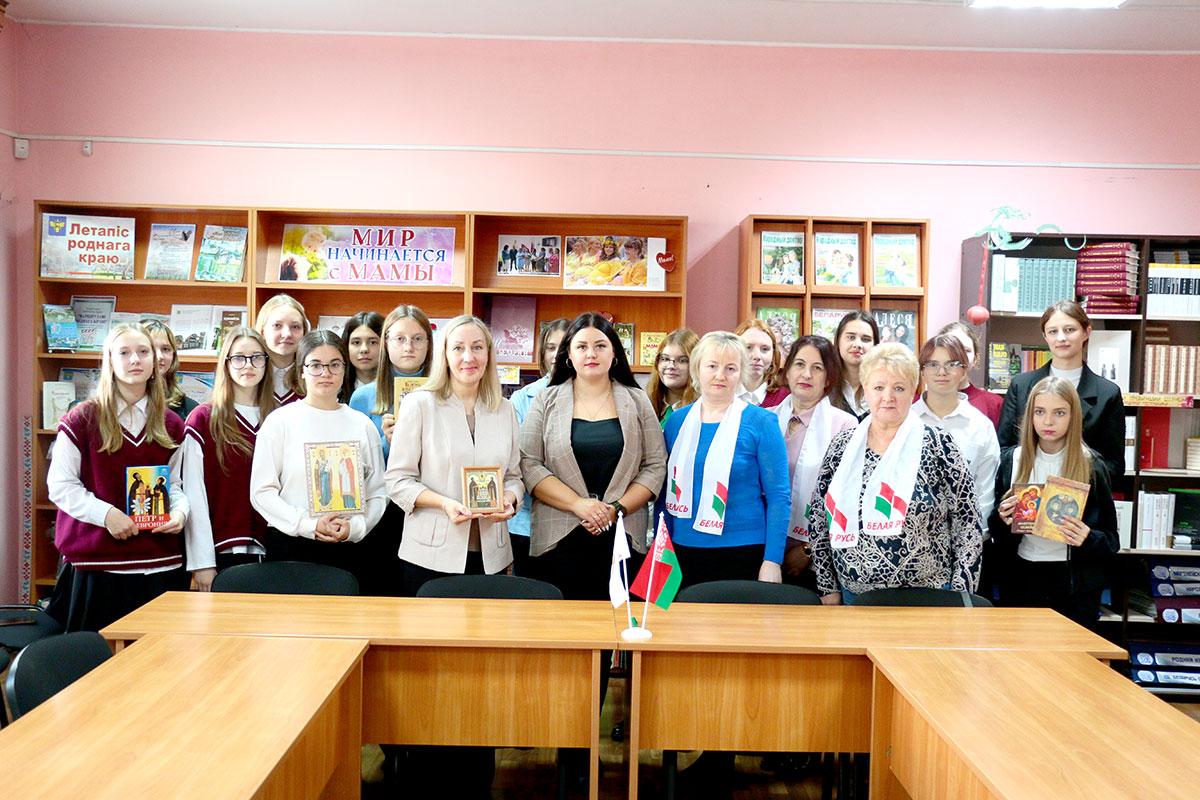С учащимися средней школы № 3 встретились заведующий отделом обслуживания и информации центральной районной библиотеки им. Ивана Пехтерева Ольга Максимович, заместитель директора Климовичского РЦСОН Ирина Филимонова, первый секретарь Климовичского РК ОО «БРСМ» Наталья Судиловская, заместитель директора Климовичского ЦДОДиМ Татьяна Шаповалова, заместитель председателя районной организации РОО «Белая Русь» Алла Антипова.