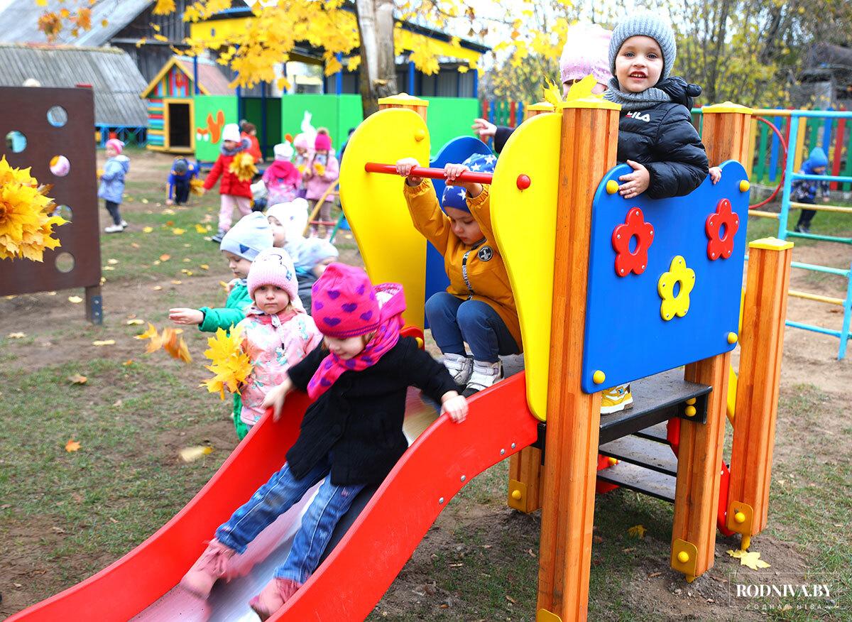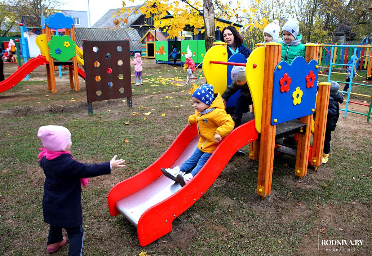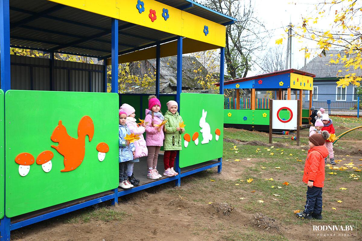 Совсем недавно на территории восьми детских садов — семи городских и одном сельском — установили игровые комплексы, качалки-балансиры. Кроме того, в «Березке» и «Росинке» оборудовали по два теневых навеса. А детское учреждение в агрогородке Тимоново обзавелось дополнительно двумя качалками на пружинах.
