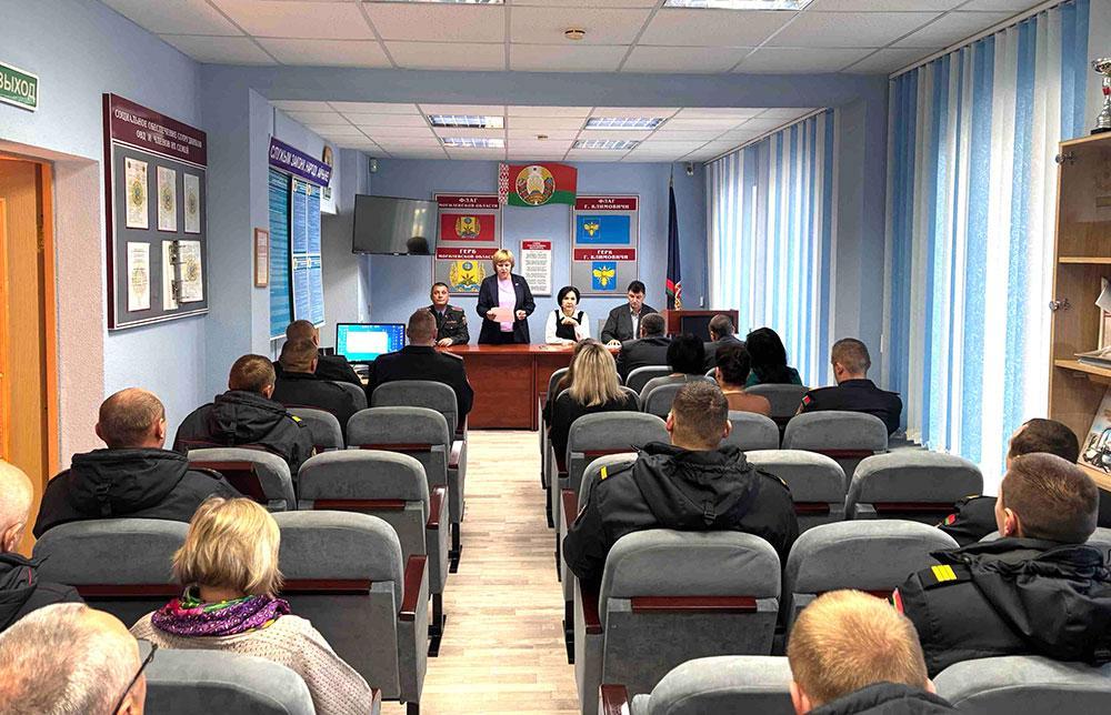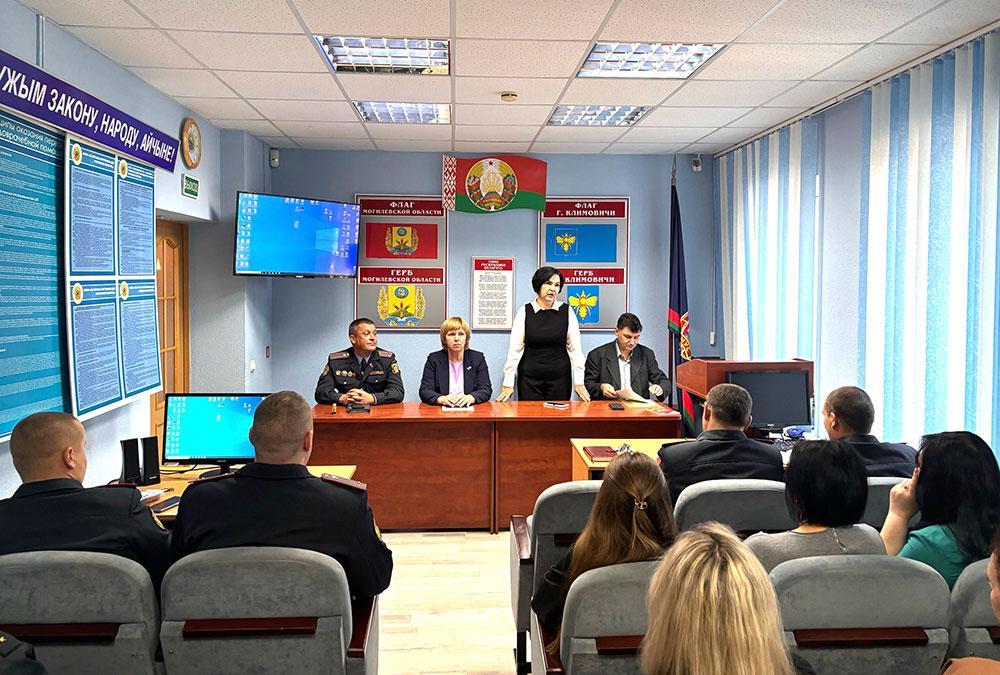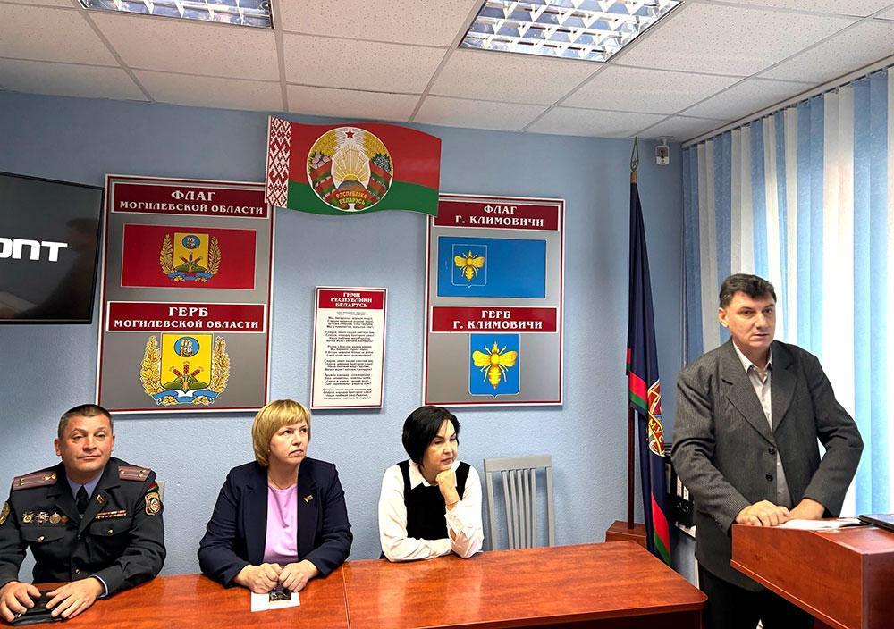 Председатель Климовичского районного отделения Белорусской партии «Белая Русь» Елена Москалева, депутат районного Совета депутатов Людмила Байкова и лектор общества «Знание», учитель истории средней школы № 1 Сергей Бруев встретились с работниками отдела Департамента охраны МВД.