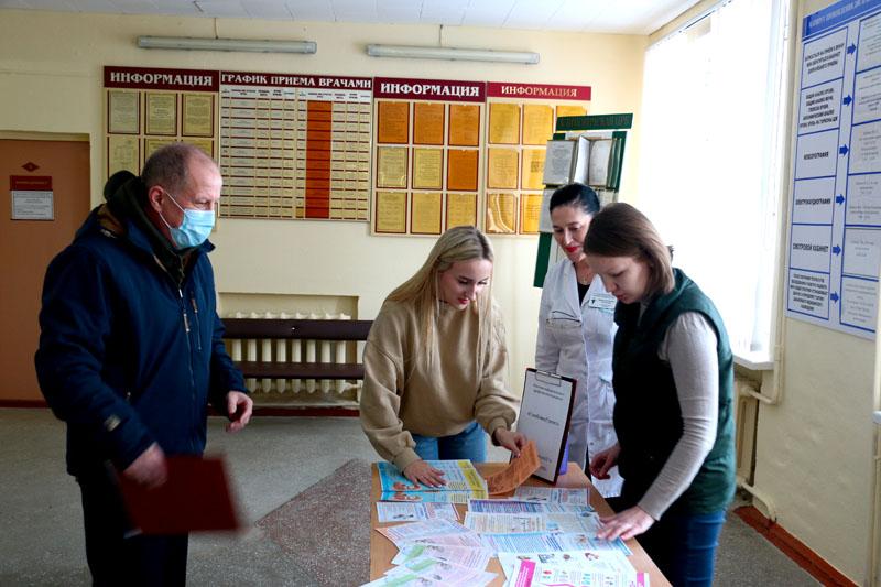 Инструктор-валеолог Виктория Краснова и помощник врача-эпидемиолога УЗ «Климовичский райЦГЭ» Ирина Шашкова вместе с инструктором-валеологом УЗ «Климовичская ЦРБ» Мариной Васильевой провели в фойе поликлиники информационно-профилактическую акцию «СтопКовидГрипп».