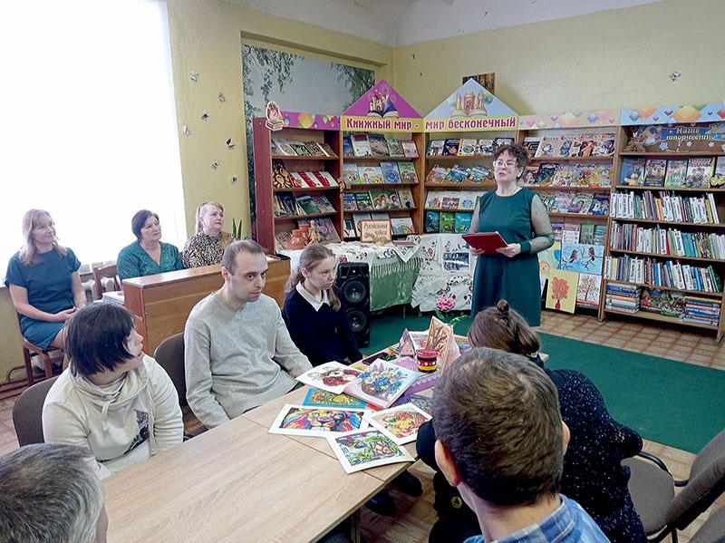 В рамках празднования Международного дня инвалидов посетители отделения социальной реабилитации, абилитации инвалидов и дневного пребывания для граждан пожилого возраста Климовичского районного центра социального обслуживания населения побывали в филиале «Городская библиотека №1 г. Климовичи», где прошло тематическое мероприятие час душевного общения «Творческий мир особенных людей!». Заведующий Елена Северинова и библиотекарь читального зала рассказали ребятам о работе библиотеки, провели обзорную экскурсию по читальному залу с его экспозициями, побеседовали с гостями об их хобби.