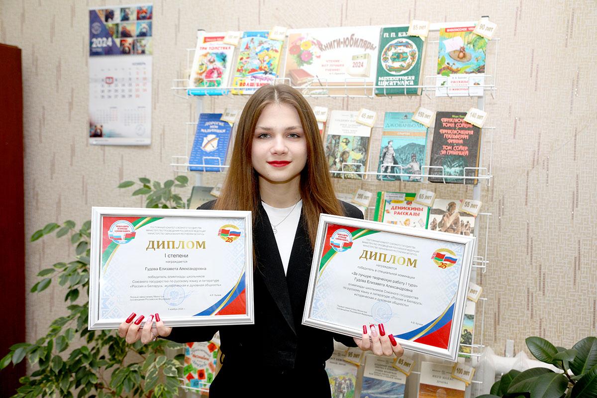 Климовчанка становилась обладательницей Диплома III степени республиканского этапа олимпиады по русскому языку и литературе. Как ни странно, но победительница олимпиады школьников Союзного государства выбрала для себя физико-математический профиль и на повышенном уровне изучает эти предметы.