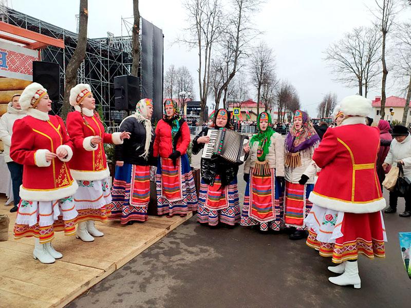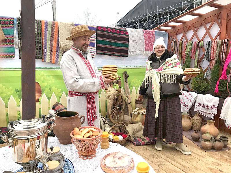На Климовичском подворье гостей встречают Клим и Климиха. Обрядовые песни, рассказы об истории образования Климовичского района чередуются с предложением отведать чая, меда и блинов.