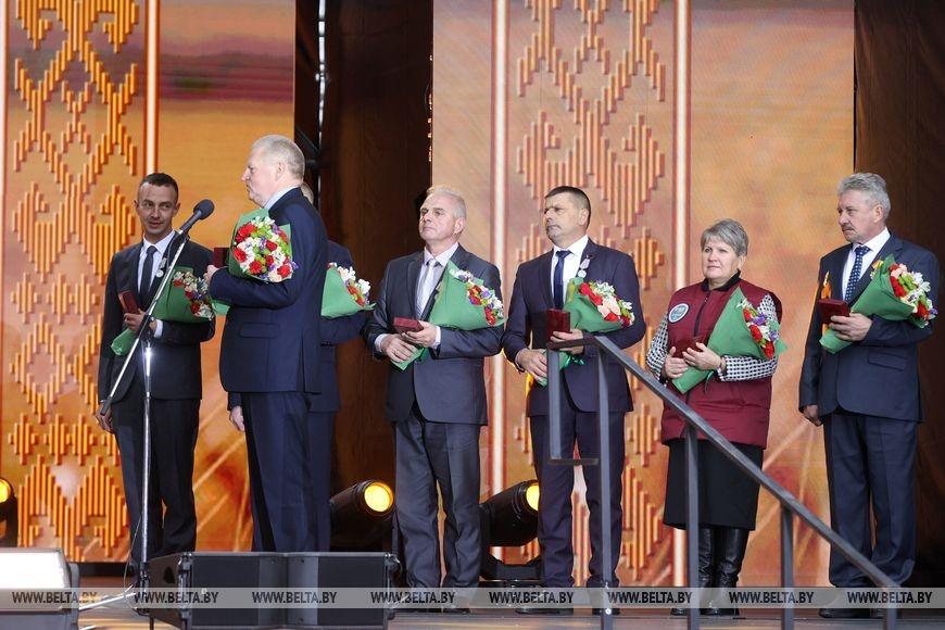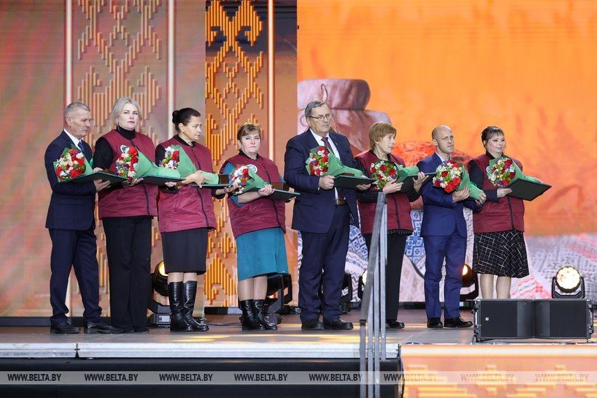 Президент Беларуси Александр Лукашенко на фестивале-ярмарке «Дажынкi» в Климовичах наградил передовиков АПК Могилевской области, передает корреспондент БЕЛТА.