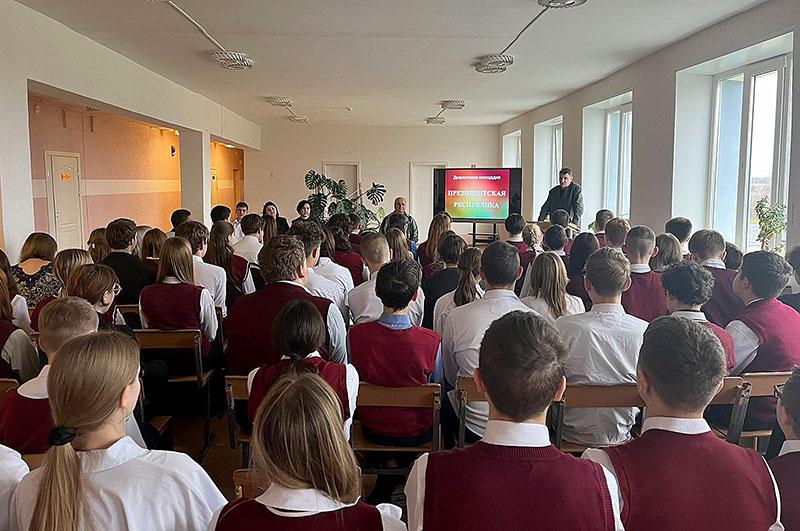 Диалоговая площадка «Президентская Республика» была организована для учащихся первой городской школы. С молодежью общались председатель районной организации Белорусской партии «Белая Русь» Елена Москалева, председатель первичной организации РОО «Белая Русь» Алина Шупишева, лектор общества «Знание» Сергей Бруев и первый секретарь РК ОО «БРСМ» Наталья Судиловская.
