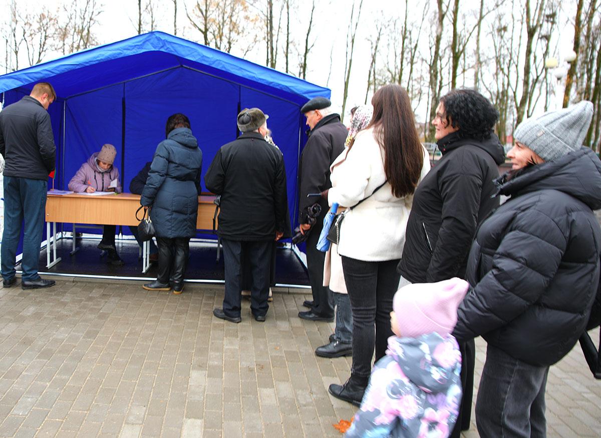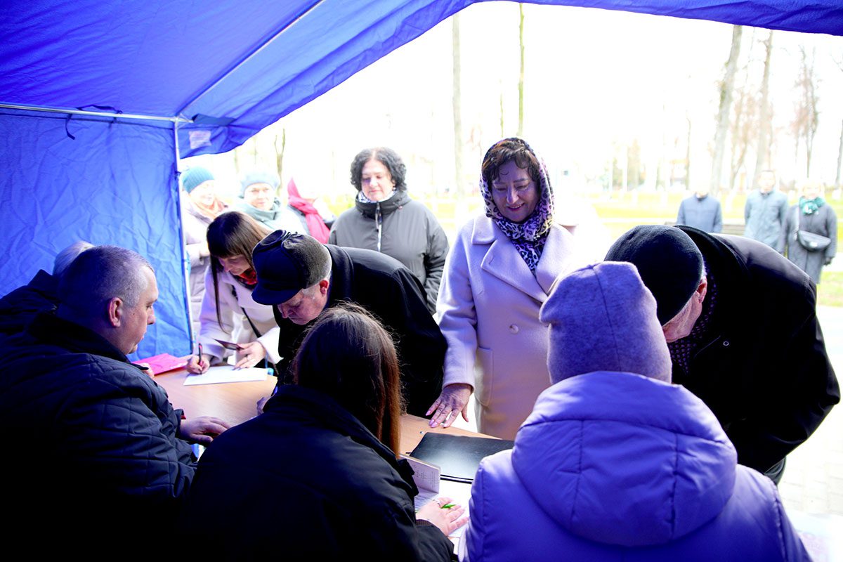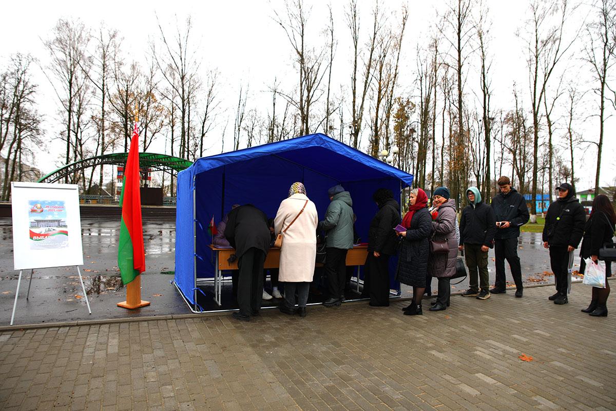 Недалеко от входа в парк Народного единства в Климовичах сегодня проходит пикет по сбору подписей в поддержку выдвижения Александра Лукашенко кандидатом в Президенты Республики Беларусь.
