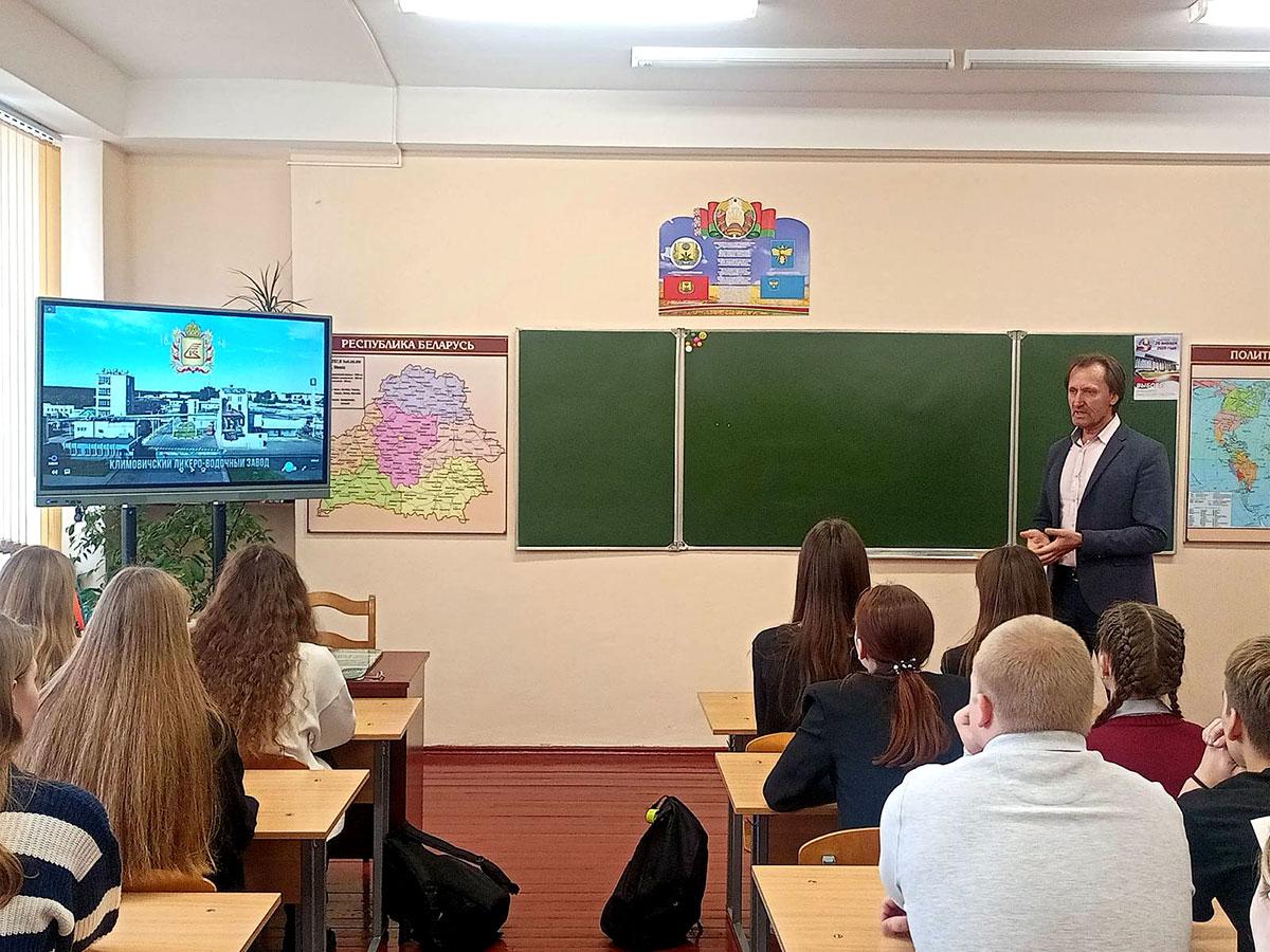 Одиннадцатиклассники с интересом слушали выступления заместителя генерального директора по общим вопросам и идеологической работе ОАО «Климовичский ЛВЗ» Анатолия Алексеева, а также начальника отдела кадров предприятия Светланы Фесько.