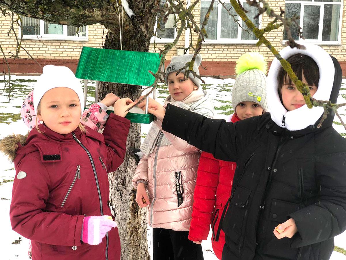 — В конце ноября на нашей тропе появился новый объект — кормушки для птиц, — рассказывает директор учреждения образования Ирина Ильющенко. — На протяжении нескольких недель ребята вместе с родителями мастерили переносные «столовые» для пернатых. Затем их разместили в школьном саду. Всего на новой станции установлено более 10 кормушек.