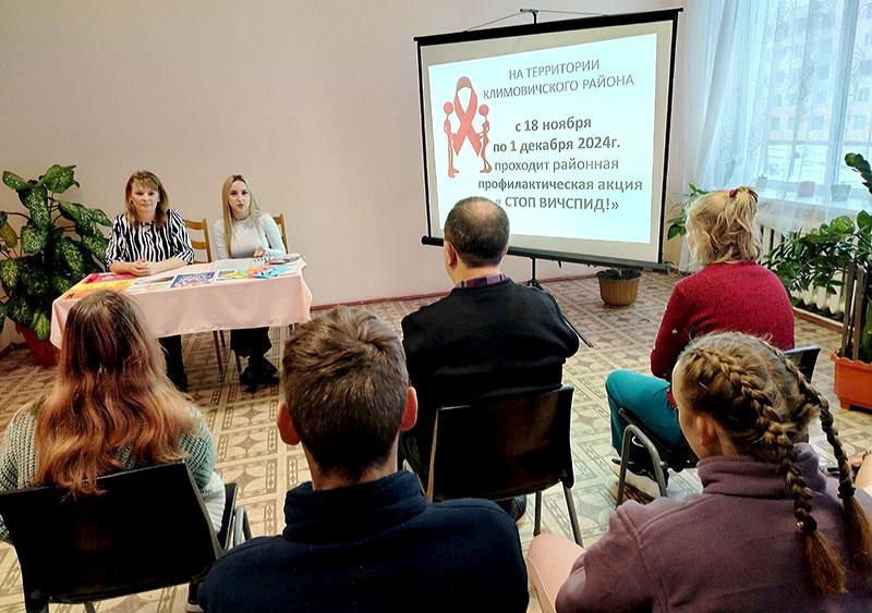 В Климовичском РЦСОН в Школе успешного родителя прошло мероприятие на тему «С прицелом на здоровье», приуроченное ко Дню борьбы со СПИДом. В нем приняли участие специалисты центра, инструктор-валеолог УЗ «Климовичский районный центр гигиены и эпидемиологии Виктория Краснова.