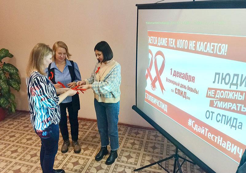 В этот же день в трудовом коллективе учреждения прошла профилактическая акция «Предохрани себя от СПИДа». Ее символом всегда являлась красная лента.