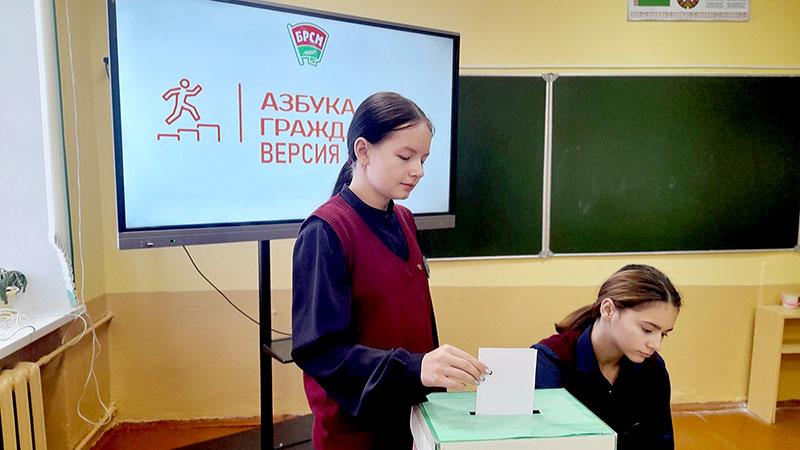 Первым местом проведения проекта «Азбука гражданина 5.0» стала Полошковская средняя школа. Ребята, а это учащиеся 8—11 классов, были весьма активными. Юноши и девушки с удовольствием пробовали себя в роли членов избирательных комиссий, наблюдателей. Давали верные ответы на задаваемые вопросы, что говорит о том, что они уже немало знают об избирательном процессе. Проект «Азбука гражданина 5.0» будет реализован во всех учреждениях общего среднего образования. Климовщины.