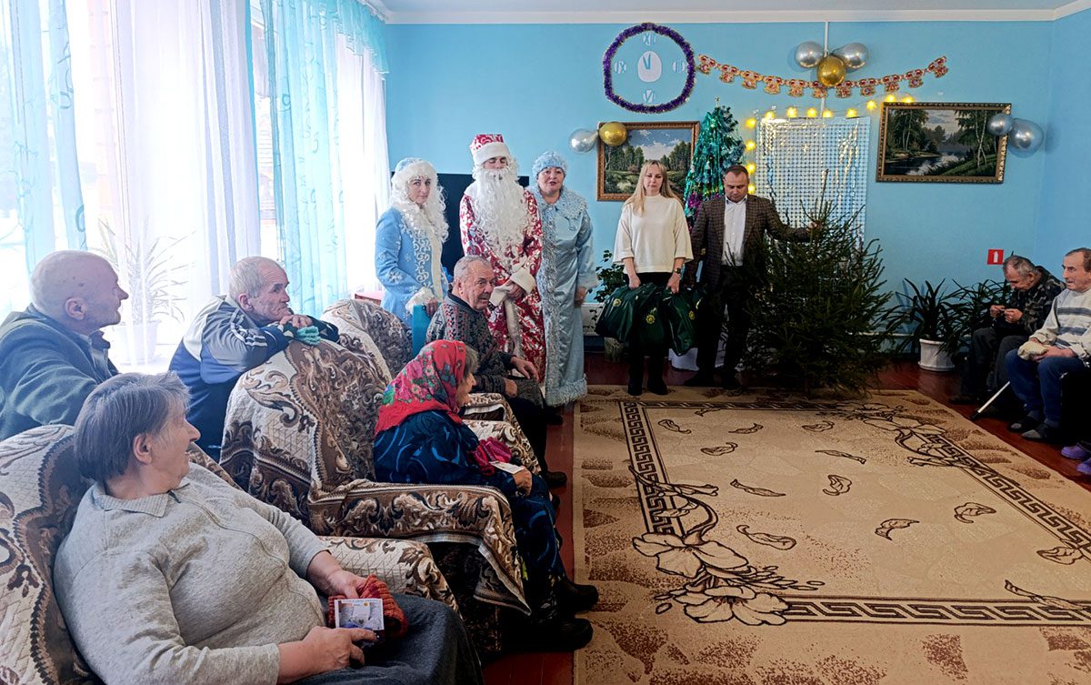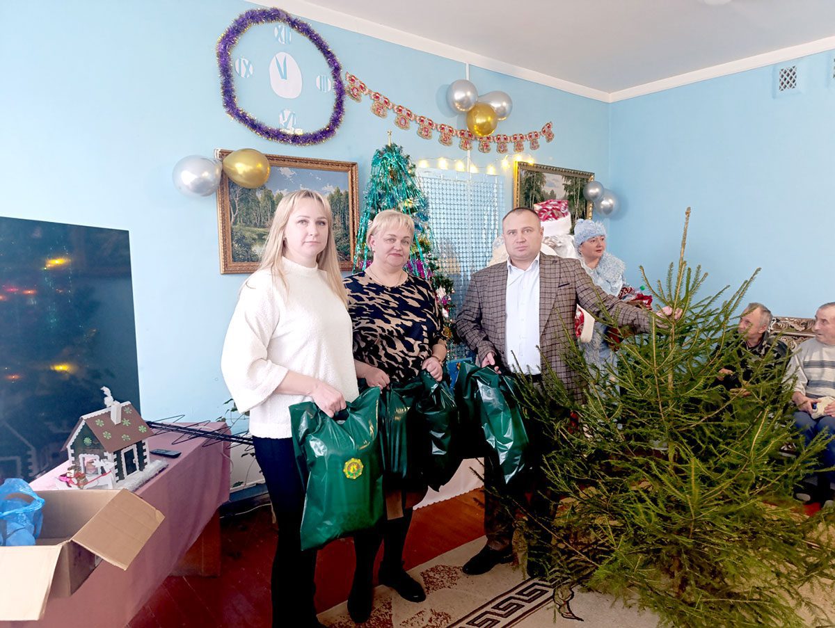 В отделении круглосуточного пребывания для граждан пожилого возраста и инвалидов в д. Борисовичи побывали гости из Климовичского лесхоза. Заместитель директора — главный инженер субъекта хозяйствования Александр Гамазин и заместитель руководителя организации по идеологической работе Ольга Гомолко привезли ветеранам пледы и новогоднюю ель в подарок.