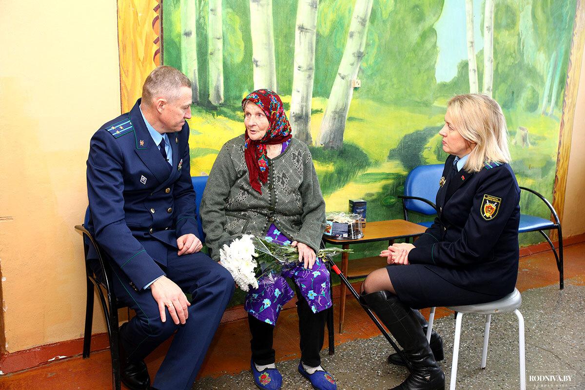 В рамках мероприятий, посвященных Международному дню памяти жертв преступления геноцида, прокурор района Олег Лимаров и старший помощник прокурора Наталья Гапеева посетили Надежду Алексеевну Горбачеву и преподнесли женщине торт и цветы.