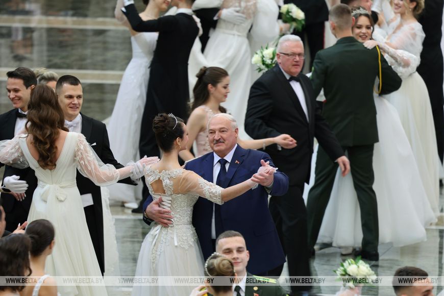 Президент отметил, что среди участников бала люди разных возрастов, статусов, должностей. Поэтому молодежи важно почувствовать суть уклада белорусского общества, где все равны в своих возможностях, а смена поколений строится на уважении исторических достижений народа и обязательно — на преемственности.