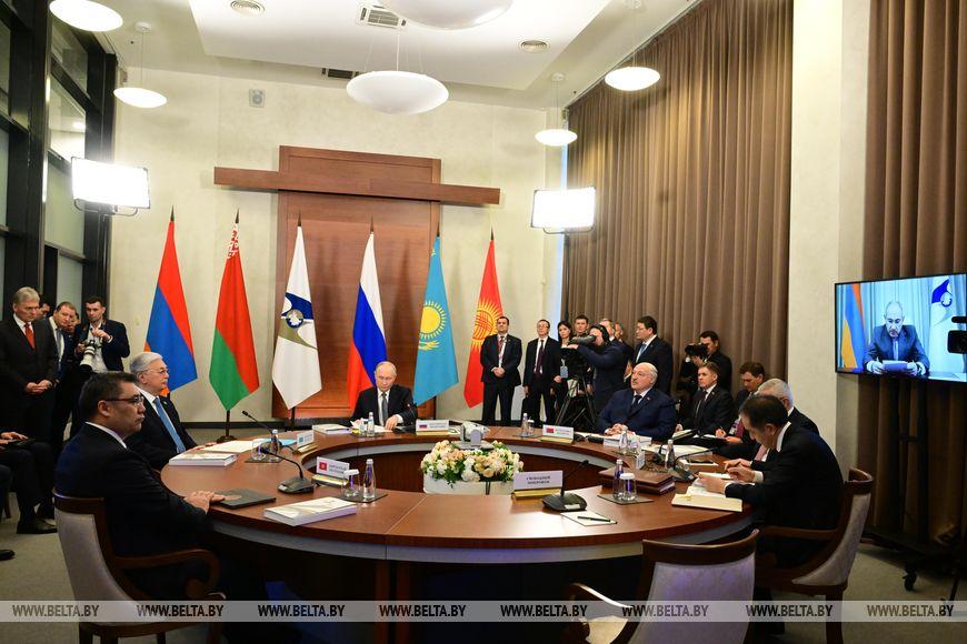 Открыл заседание в узком составе Владимир Путин. По его словам, стороны собрались подвести итоги уходящего года, обсудить текущие вопросы интеграционного строительства, рассмотреть ряд решений, направленных на дальнейшее углубление сотрудничества в ЕАЭС в самых разных сферах, и наметить планы на перспективу.