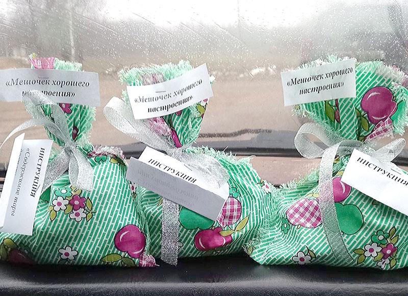 Они подготовили для земляков подарки. Каждый ветеран получил «Мешочек хорошего настроения», в котором находились сладости и шуточная «инструкция по применению»: «Содержимое скушать с удовольствием. При употреблении — улыбнуться!».