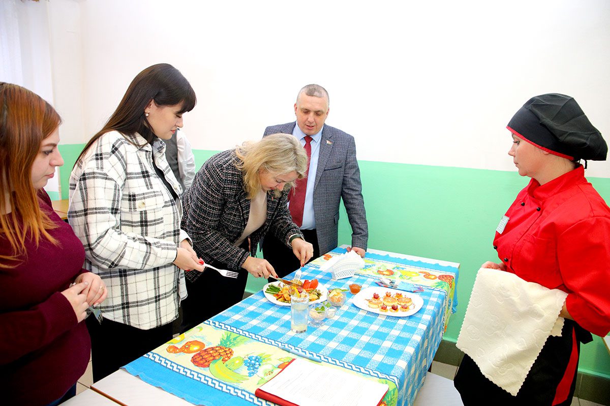 В столовой третьей городской школы соревновались шесть представителей профессии. За звание лучшего боролись Елена Захарченко — повар Роднянской средней школы Климовичского района»; шеф-повар и повар из Тимоновской средней школы Екатерина Кузьменкова и Есения Ковалева; Игорь Ковалев работающий в СШ № 3; Карина Осмоловская из средней школы № 4 и Наталья Ковалева из первой городской школы.