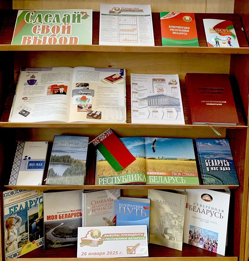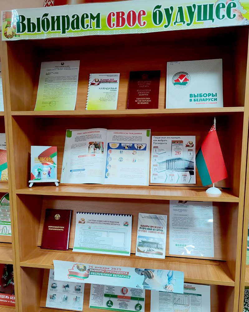 Так, в центральной районной библиотеке в помощь избирателю представлена выставка «Выбираем свое будущее», в Барсуковской сельской библиотеке — «Будущее создаем мы», в городской библиотеке № 1, Лобжанской и Малышковичской сельских библиотеках — «Сделай свой выбор», в Осмоловичской сельской библиотеке — «Выборы 2025: важно знать», в Полошковской сельской библиотеке — «В помощь избирателю».