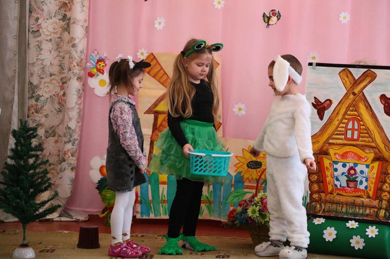 В детском саду № 2 «Солнышко» состоялось театрализованное мероприятие «Как Мышка безопасности училась». Это постановка по знакомой детям сказке «Теремок». В ней участвовали сами ребята и воспитатели.