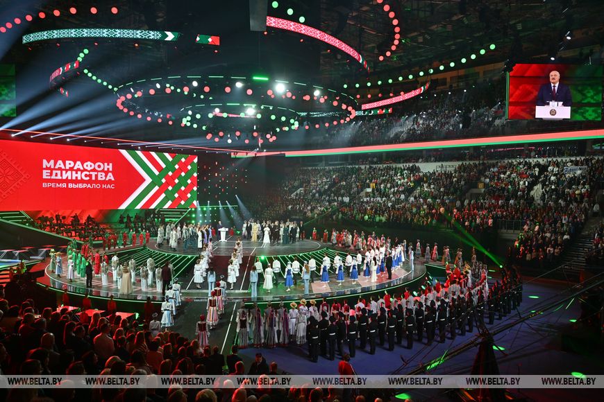«Марафон единства» стал настоящим гимном. Гимном суверенной стране и ее истории. Гимном всем достижениям нашей независимости. Вы, стоящие на этой сцене, и те, кого сегодня здесь нет, но мы их видели в городах нашей страны, — просто молодцы. Огромное вам спасибо!