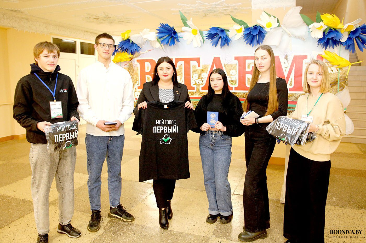 Белорусский республиканский союз молодежи дал старт республиканской акции для впервые голосующих граждан «Твой голос первый». Такие ребята получают от общественного объединения брендированные футболки с названием акции.
