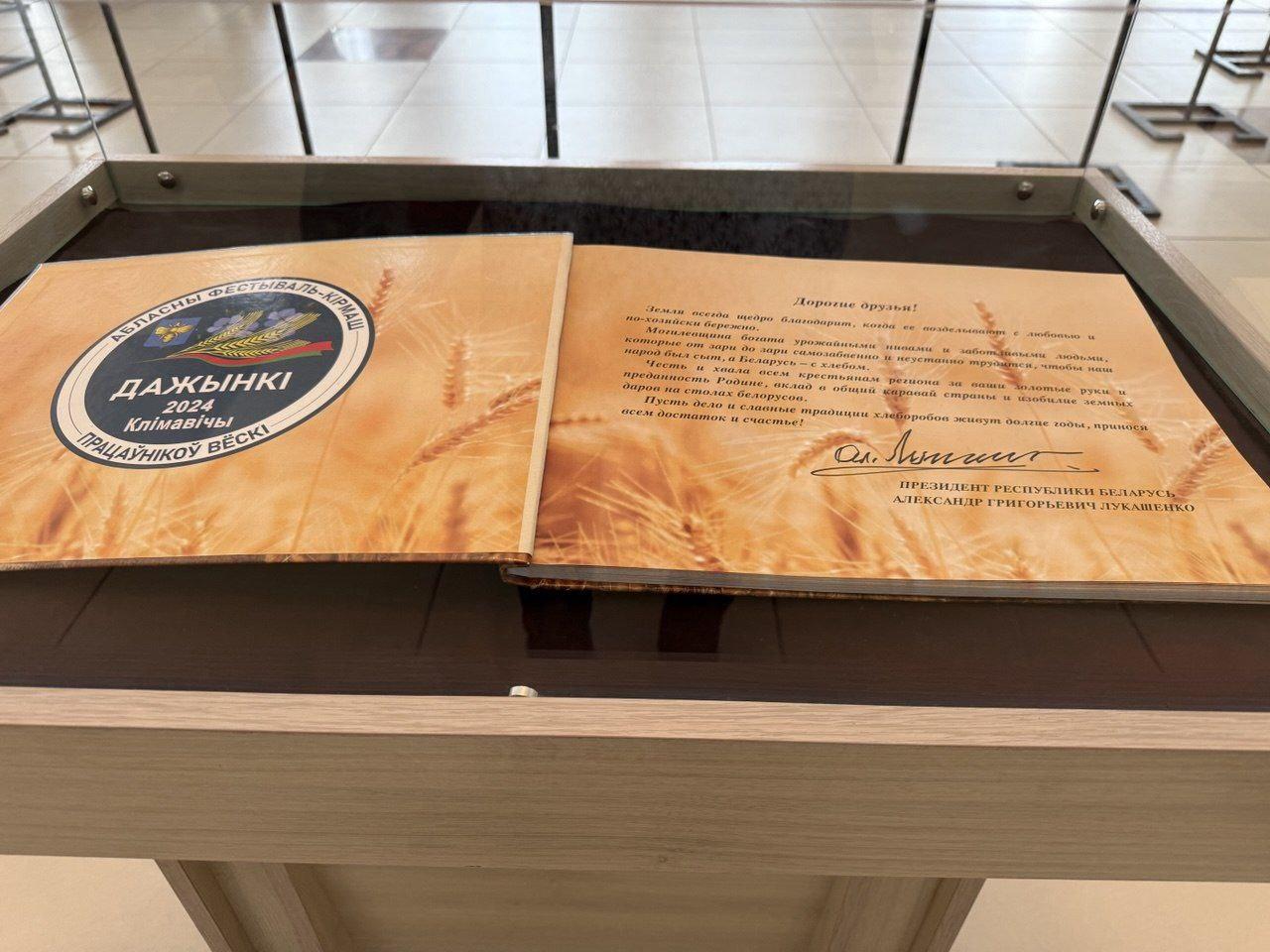 В фойе Дворца культуры области для участников торжества организована фотовыставка «Соль земли Могилевской», посвященная труженикам агропромышленного комплекса региона и уборочной кампании 2024 года. Центральным экспонатом является книга «Соль земли Могилевской» с автографом Президента Республики Беларусь Александра Лукашенко, который он оставил во время празднования фестиваля «Дажынкі-2024» в Климовичах.
