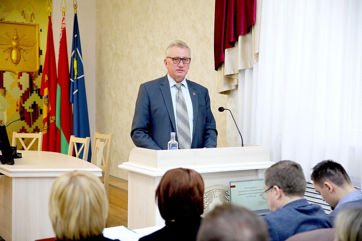 Очередная двенадцатая сессия Климовичского районного Совета депутатов состоялась 28 февраля. Были заслушаны отчеты о работе райисполкома по социально-экономическому развитию Климовщины и президиума районного Совета депутатов по итогам 2024 года.