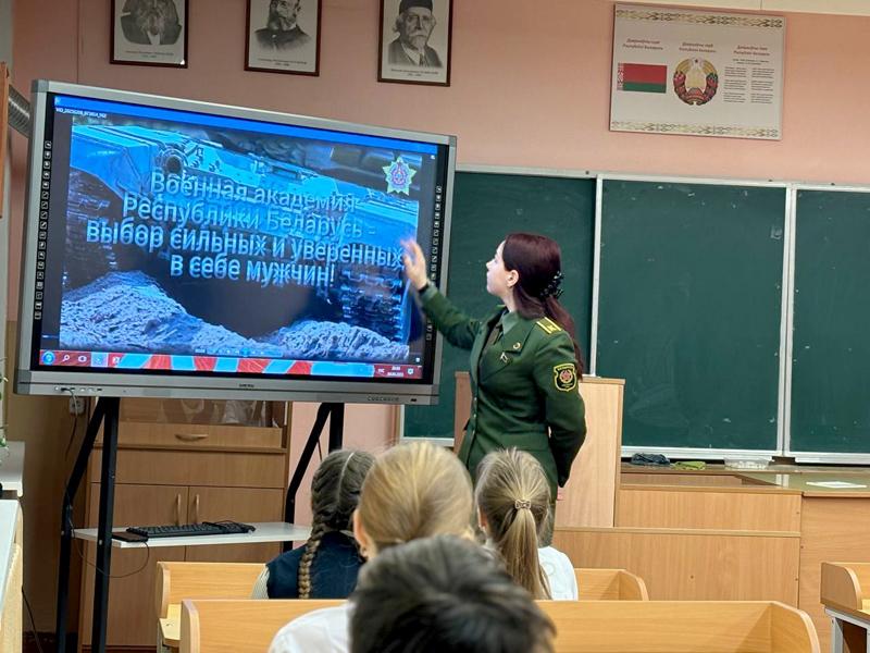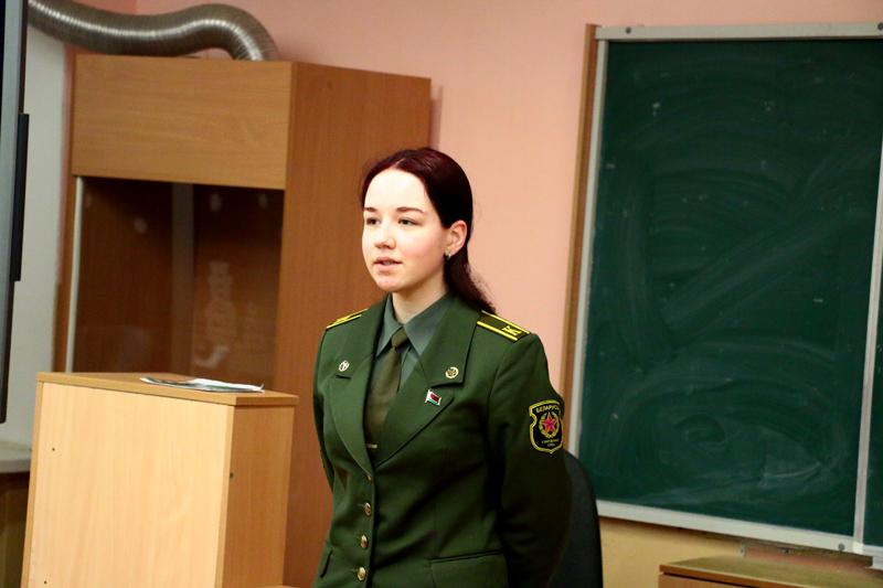 С целью познакомить молодежь с военными специальностями и заинтересовать ее в выборе стези военного с учащимися ГУО «Климовичская районная государственная гимназия им. И.С. Николаева» встретилась курсант УО «Военная академия Республики Беларусь» Александра Клеошина.