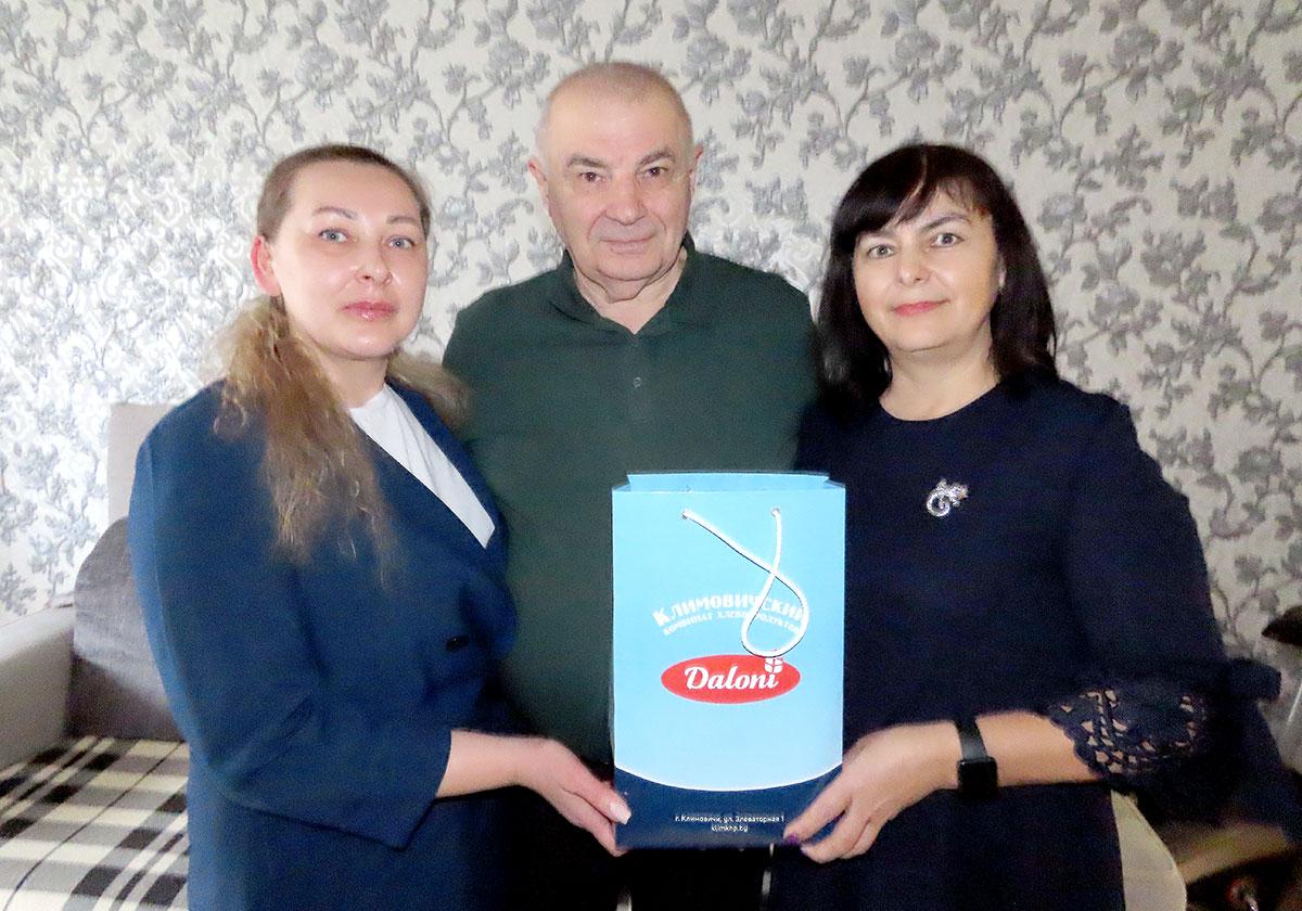 Климовчане Ефим Самуилович и Любовь Сергеевна Каспины встречали гостей: с 75-летним юбилеем супруга пришли поздравить представители Климовичского комбината хлебопродуктов —заместитель директора по идеологической работе, кадрам и быту Татьяна Вениаминовна Иванова и председатель профкома Людмила Васильевна Прудникова.