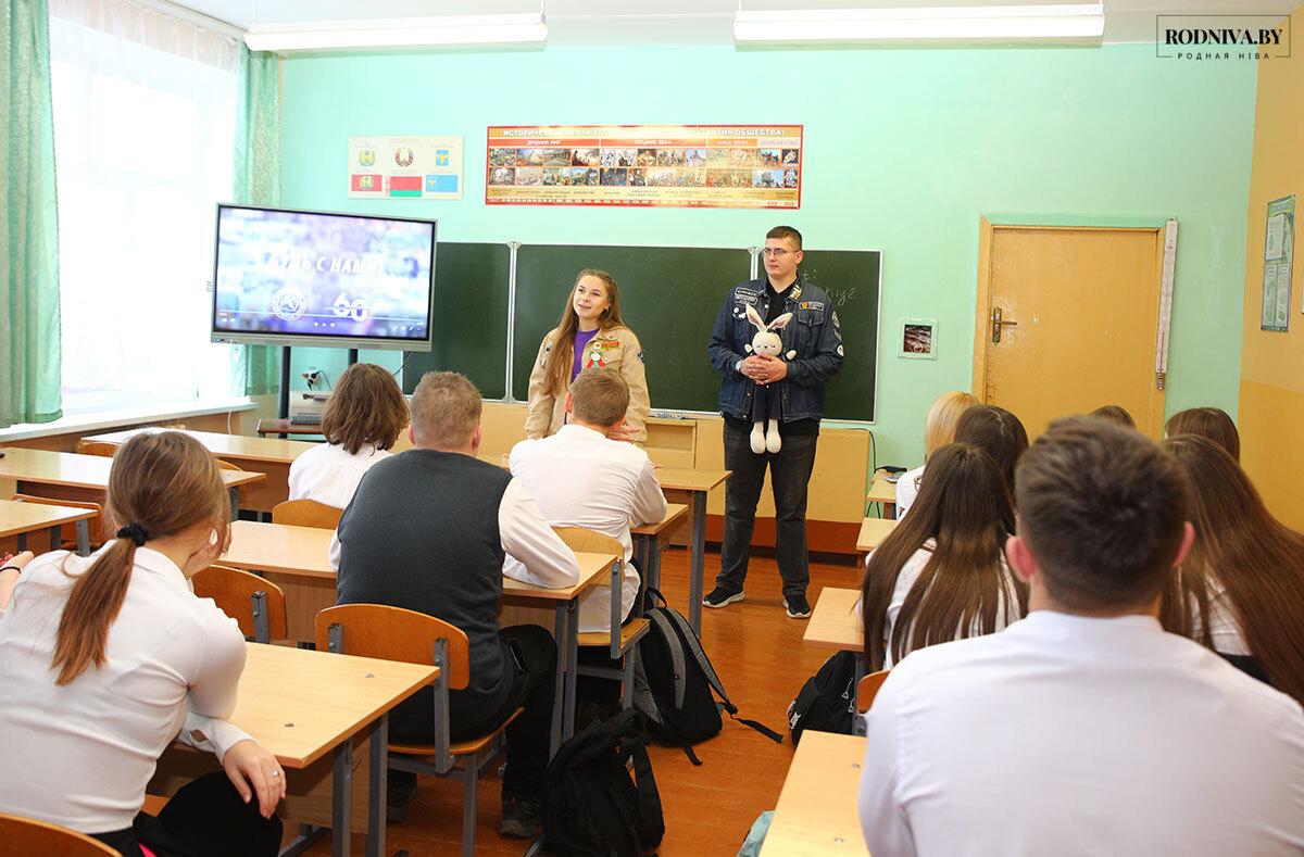 Первым местом посещения стала Тимоновская средняя школа. На торжественной линейке бойцы отряда исполнили под гитару свою песню и вручили директору школы Ирине Ильющенко памятный подарок. А потом студенты, представляющие различные учебные заведения Приднепровского края, разошлись по классам.