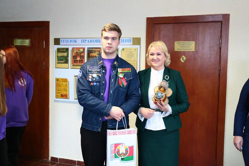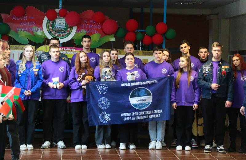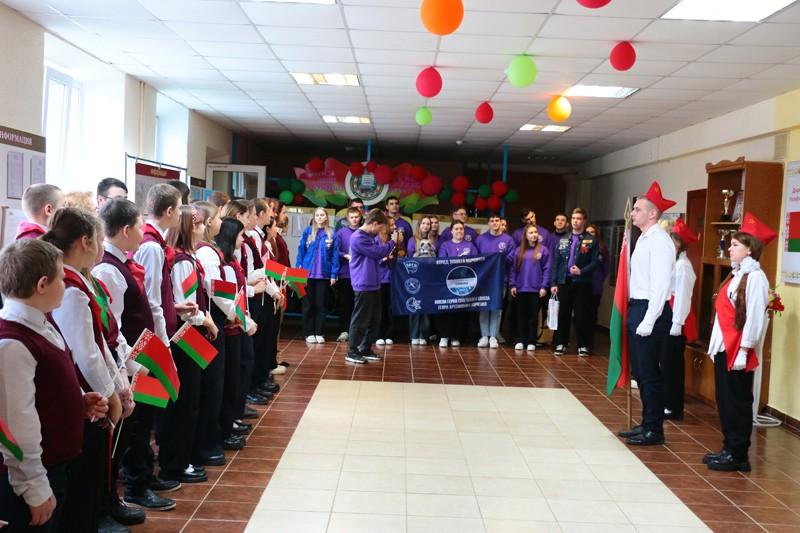 Очередным учебным заведением, где побывали бойцы студотряда, стало ГУО «Полошковская средняя школа Климовичского района». На торжественной линейке бойцы отряда исполнили под гитару свою песню и обменялись с директором школы Еленой Томашовой памятными подарками. А потом студенты, представляющие различные учебные заведения Приднепровского края, разошлись по классам. Молодые люди рассказали школьникам о своих учебных заведениях, а также профессиях, которые там можно получить.