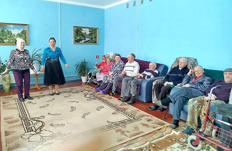 В преддверии Дня защитников Отечества и Вооруженных Сил Республики Беларусь творческий коллектив волонтеров серебряного возраста «По зову сердца» отделения социальной реабилитации, абилитации инвалидов и дневного пребывания для граждан пожилого возраста Климовичского РЦСОН с тематической концертной программой «Солдатам Отечества Слава!» посетил отделение круглосуточного пребывания для граждан пожилого возраста и инвалидов в деревне Борисовичи.