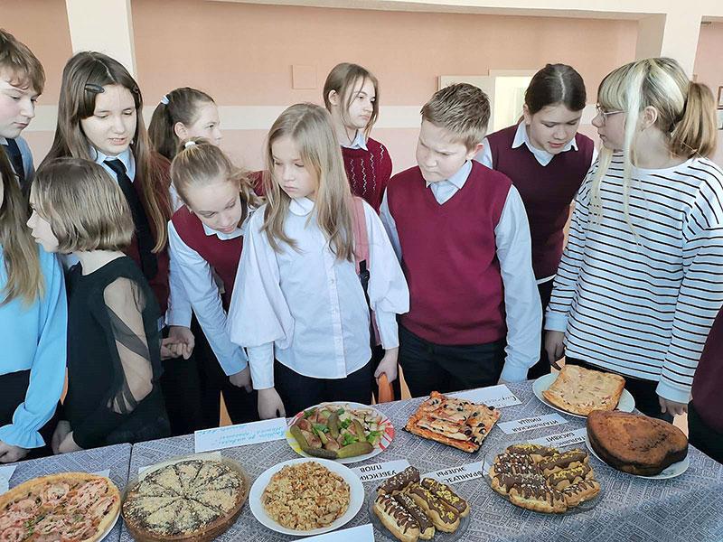В один из дней декады ученики школы демонстрировали блюда «Кухни народов мира», где были представлены узбекский плов, осетинский пирог, итальянские пиццы, французские круассаны, заварные пирожные, бисквиты и, конечно, блюда белорусской кухни.