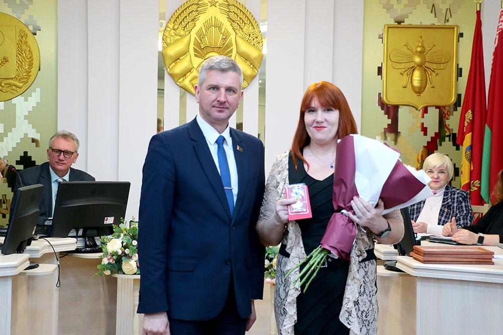 На утреннем аппаратном совещании с активом района председатель райисполкома Виктор Пугач вручил орден Матери многодетной маме Светлане Ожог. Семья проживает в агрогородке Полошково.