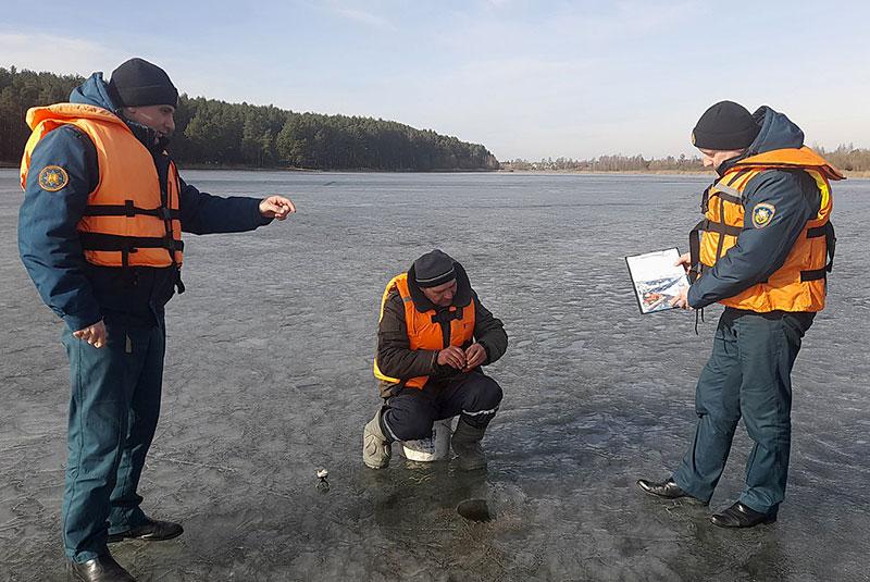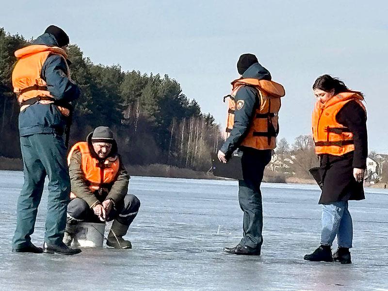 Чтобы напомнить любителям подледной рыбалки правила безопасности на водоемах, работники МЧС с первым секретарем райкома ОО «БРСМ» Натальей Судиловской отправились в рейд по водоемам.