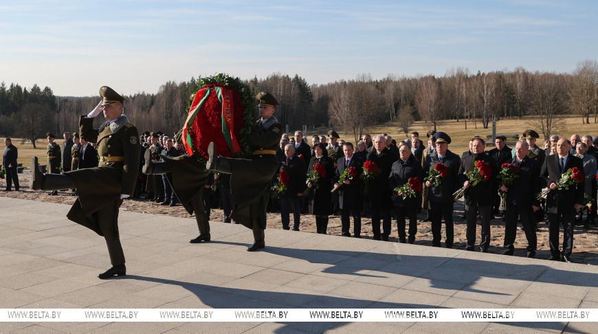 Первым к Вечному огню лег венок от Президента Республики Беларусь как символ того, что вся страна сегодня скорбит, вспоминая жителей Хатыни, а также жителей белорусских деревень, разделивших ее судьбу. Таких населенных пунктов 288, частично или полностью уничтоженных — более 12 тыс.
