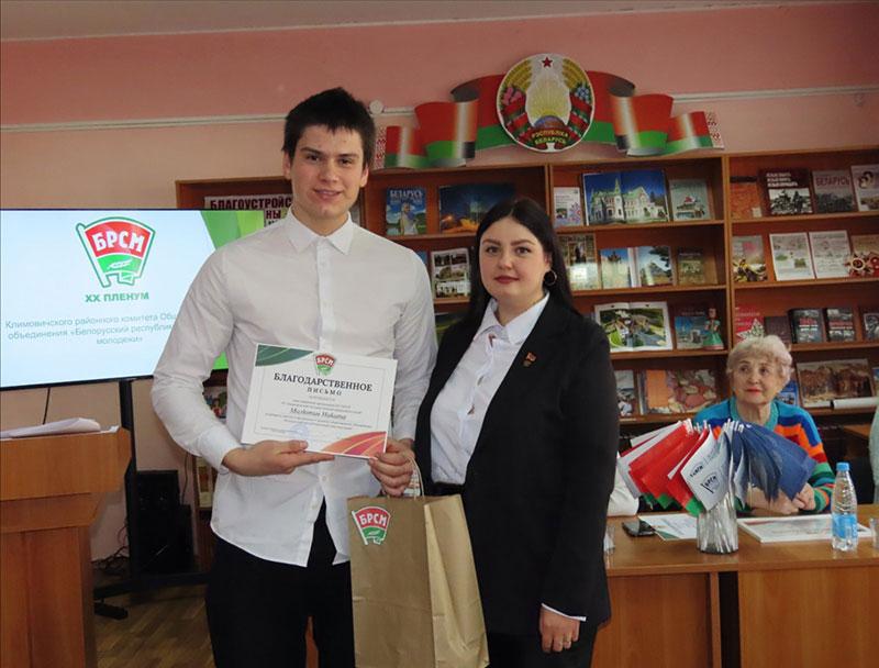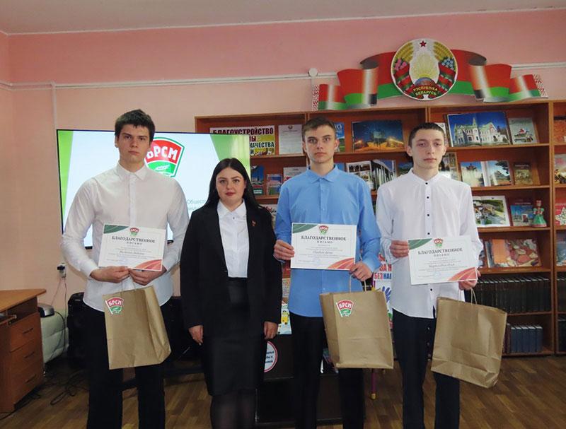 За участие в деятельности Климовичской районной организации благодарность райкома ОО «БРСМ» объявлена учащимся Климовичского государственного аграрного колледжа Денису Пшакину, Илье Мартусевичу, Никите Милютину.