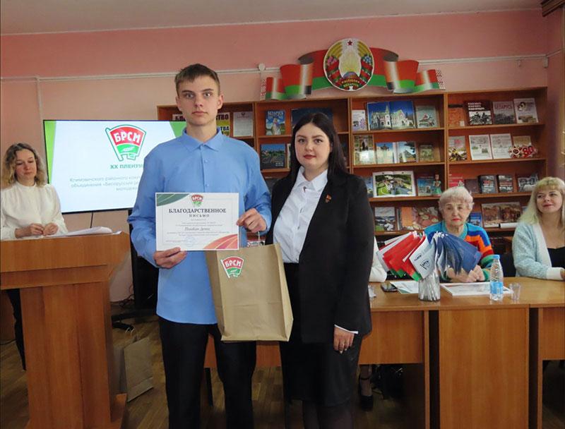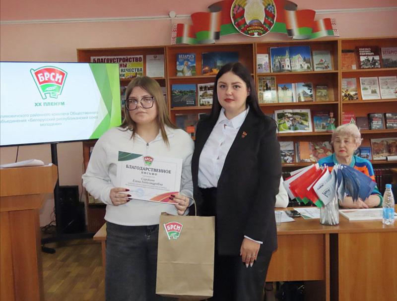 За активное участие в программах и проектах БРСМ Благодарность Могилевского областного комитета ОО «БРСМ» получила Полина Гордиевич.
