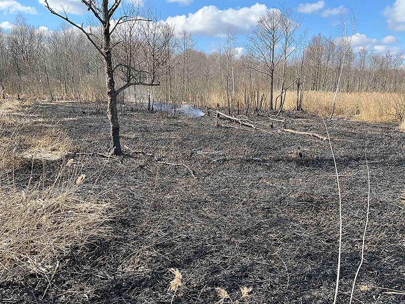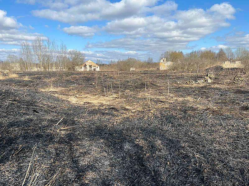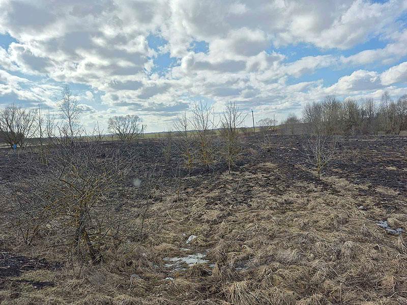 Прежде чем поднести горящую спичку к траве, знайте: согласно статье 16.40 Кодекса Республики Беларусь об административных нарушениях, за незаконное выжигание сухой растительности, трав на корню, а также стерни и пожнивных остатков на полях либо непринятие мер по ликвидации палов виновные лица привлекаются к административной ответственности в виде штрафа в размере от 10 до 30 базовых величин.