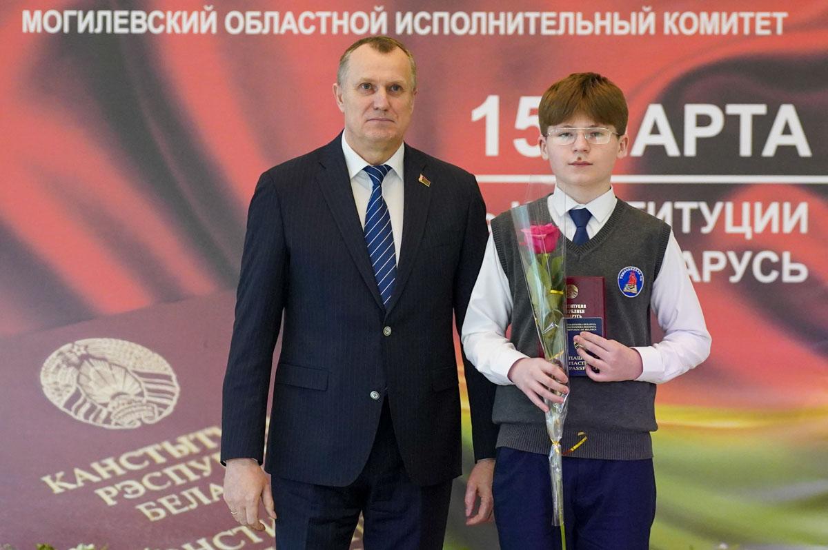 Представители регионов Приднепровского края получили паспорта из рук председателя Могилевского облисполкома Анатолия Исаченко. Среди участников акции был и представитель Климовичского района Михаил Комков. Парень учится в Тимоновской средней школе.