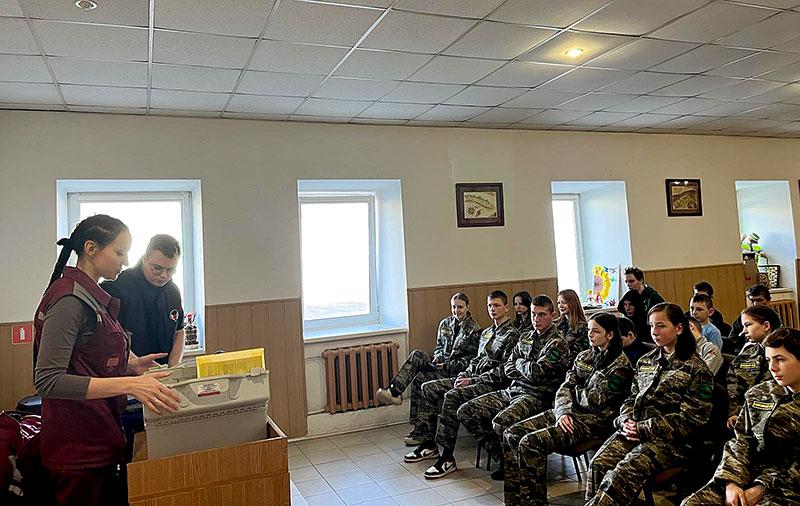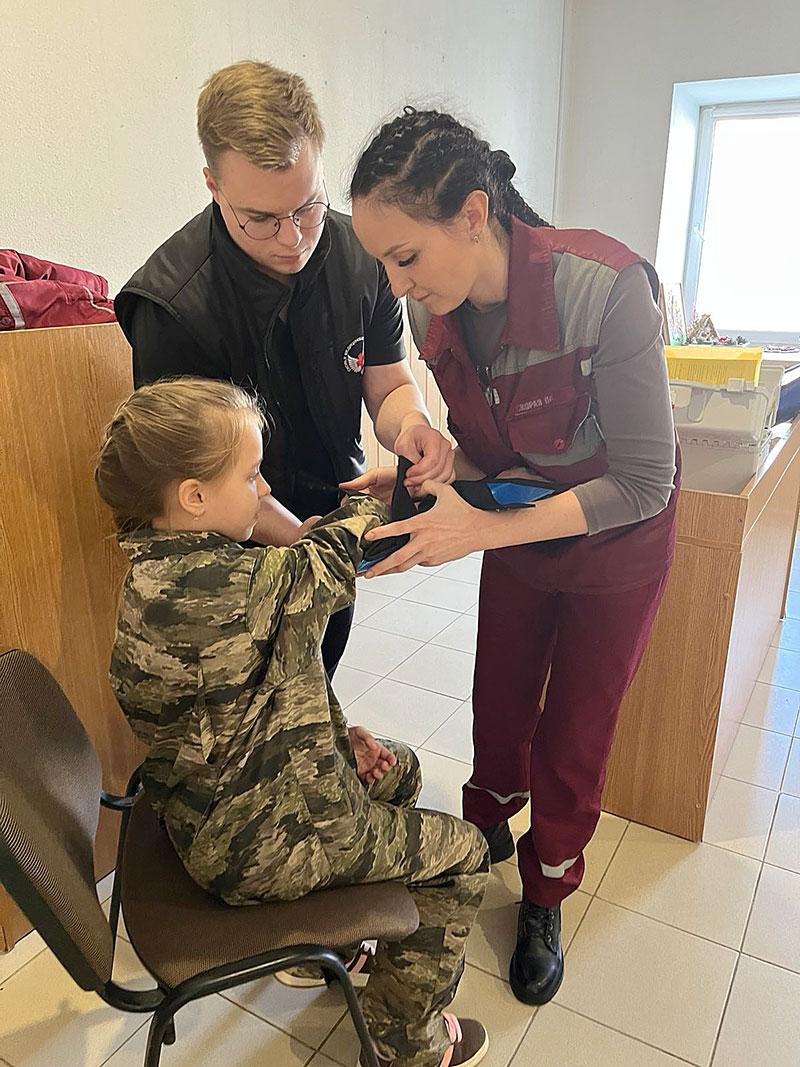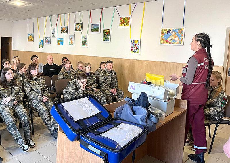 Была проведена практическая отработка по оказанию первой медицинской помощи при различных неотложных состояниях. Парням и девушкам пояснили принципы базовой сердечно-легочной реанимации. Медицинские работники рассказали, какие бывают виды ран, как остановить кровотечение, наложить повязку и шину. Обратили внимание на особенности транспортировки пострадавшего.